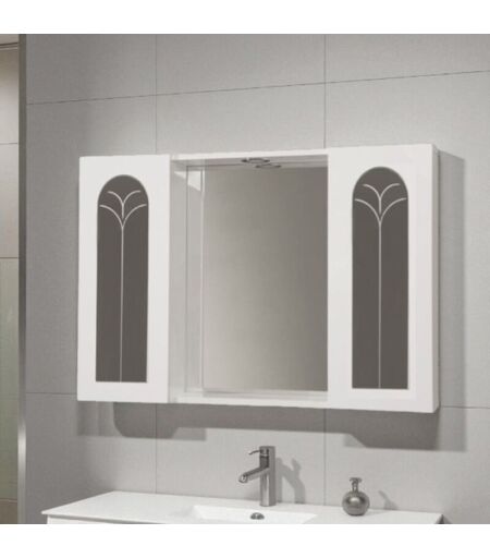LIBEROSHOPPING - Specchiera bagno 91 cm Bianco Lucido a 2 ante palme con luce led