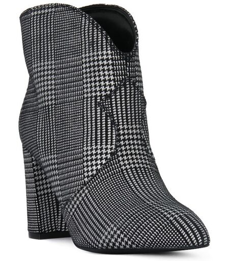tronchetti in tweed con taglio arrotondato fodera in pelle e tacco alto 8 5 cm. moda e qualita italiana. ...