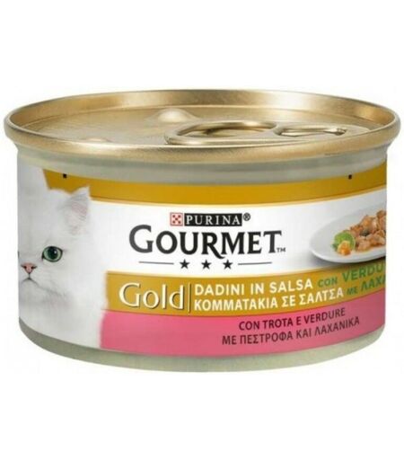 Gourmet Gold Dadini in salsa trota e verdure Purina 85 grammi. Teneri bocconcini con carni o pesce delicatamente cotti, avvolti in una squisita salsa per offrire al tuo gatto un gusto ricco ed intenso. ...