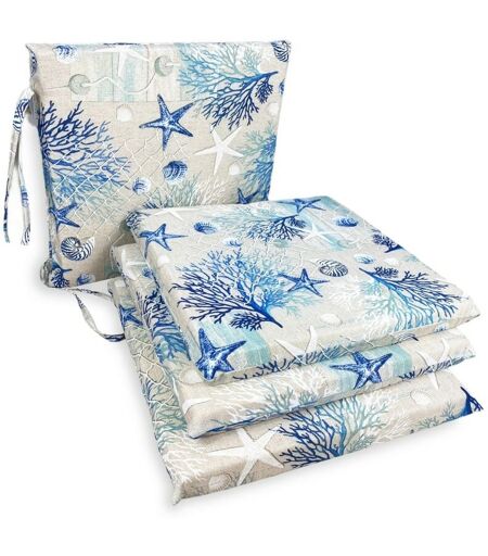 Coprisedia realizzato in tessuto con soggetti marini e coralli...in una fantasia...tutta mare! Composizione tessuto 70% cotone e 30% poliestere. È dotato di lacci che mantengono stabile il coprisedia a qualsiasi tipo di sedia. Misura cm. 40x40 ed ha uno spessore di cm. 5 ed è lavabile in lavatrice. Il prezzo si riferisce ad un singolo pezzo. Possibilità di coordinarlo con: tovaglia, tenda e telo arredo nella stessa fantasia e tessuto. È un prodotto di qualità made in Italy !!! ...