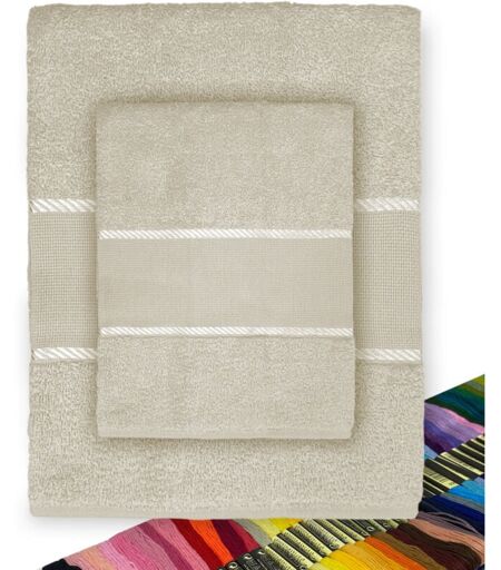 TEX FAMILY Set Asciugamani Spugna Tela Aida da ricamare Punto Croce 1+1 Viso E OSPITE con Filato in Omaggio Tortora