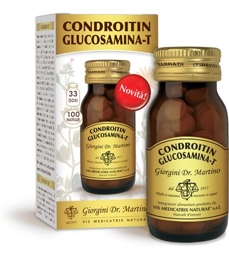 CONDROITIN GLUCOSAMINA - T - Descrizione Integratore di condroitinsolfato e glucosamina solfato, estratti rispettivamente dalla cartilagine di crostacei e dalle articolazioni di bovini, essendo due componenti costituitivi dei tessuti cartilaginei animali. Non contiene conservanti, coloranti, aromi … ...