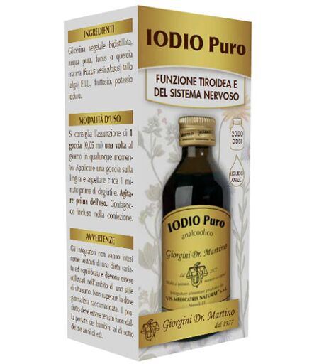 IODIO Puro - Descrizione Lo iodio contribuisce alla normale funzione tiroidea e alla regolare produzione di ormoni da parte della tiroide. Inoltre sostiene il metabolismo energetico la funzione cognitiva e il normale funzionamento del sistema nervoso. L'estrazione delle piante eseguita da noi in … ...