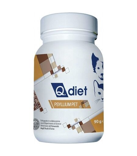 Q diet - PSYLLIUM PET - Descrizione Alimento complementare per cani e gatti, è caratterizzato da ottima solubilità e proprietà gelatinizzanti. Il particolare processo di micronizzazione lo rendono velocemente idratabile e disponibile. Le cuticole di Psyllium costituiscono la fonte ottimale di fibra… ...