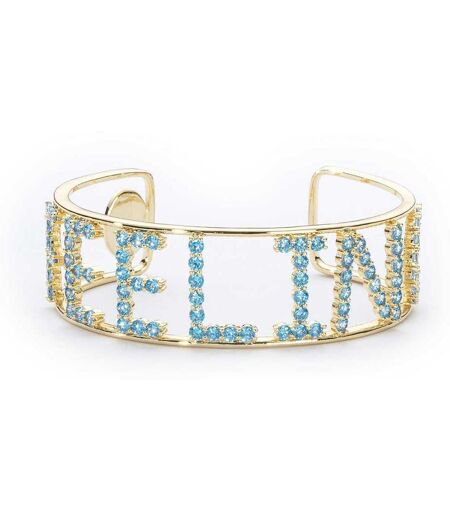 Bracciale Da Donna Di Le Carose Della Collezione Power Lady. Bracciale In Bronzo E Galvanica Dorata E Swarovski Blue Con La Scritta Feeling. Bracciale Del Diametro Cm 6 Regolabile E Altezza Scritta Cm 9. La Referenza Feelingg, Materiale Gioiello: ...