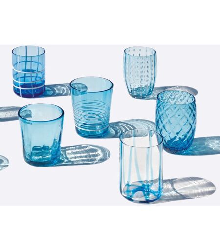 ZAFFERANO Melting Pot Set 6 Bicchieri Monocolore - Acquamarina - Vetro Soffiato a Mano, 32 cl - Tumbler Artigianali per Acqua e Cocktail -