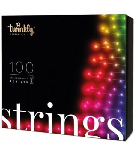 TWINKLY Strings - Stringa luminosa a led controllata dall'applicazione con 100 led rgb. 8 metri. Filo nero. Per interni ed esterni -