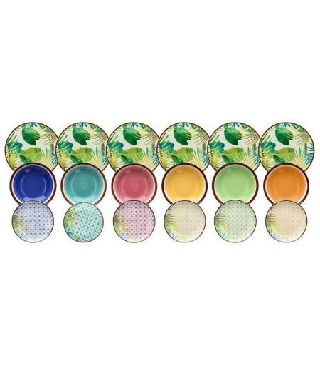 Servizio Di Piatti 18 Pezzi New Jungle Linea Madison in Porcella/Stoneware Multicolor Colore: Multicolor Materiale: Porcellana/Stoneware Design: Il servizio piatti da 18 pezzi New Jungle completa la linea Jungle di Tognana con un mood tropical rivisitato e reso ancora più frizzante con 6 tonalità di colore diverse per una tavola esplosiva e di personalità. Il Set è Composto: 6 Piatti Piani, 6 Piatti Fondi, 6 Piatti da Frutta o da Dessert Dimensioni: 6 Piatti Piani da 27 cm In Porcellana; 6 Pitti Fondi da 21 cm in Stoneware e 6 Piatti da Dessert o da Frutta da 19 cm Il servizio piatti è lavabile in lavastoviglie e idoneo all'uso in microonde. ...