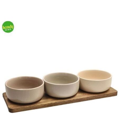 Set 3 ciotole + vassoio rettangolare Plume prodotto dal brand Tognana. Servi aperitivi, salse e finger food con stile grazie al set Plume : 3 ciotoline in stoneware abbinate a un vassoio rettangolare in legno di acacia . Il contrasto tra ceramica e legno dona un look caldo e contemporaneo, perfetto per la tavola di tutti i giorni e per le occasioni con ospiti. Appartenente alla Linea Tapas Tognana. Set composto da: 3 ciotole in stoneware e 1 vassoio rettangolare in acacia dalle dimensioni di: 32 x11 cm . Caratteristiche Materiali di qualità : stoneware resistente + acacia naturale. Presentazione curata : ideale per tapas, salsine, snack, antipasti. Coordinato pronto all'uso : porti subito in tavola un set completo e armonioso. Design Tognana : perfetto anche come idea regalo. Linea : Tapas Modello : Plume Materiali : ciotole in stoneware . vassoio in legno di acacia Dimensione vassoio : 32 x 11 cm Colore : multicolor (ciotole). legno naturale (vassoio) Ideale per Aperitivi, ...