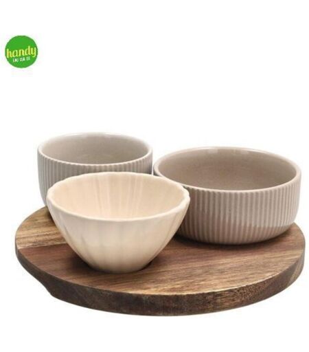 Set 3 ciotole + vassoio rotondo Plume prodotto dal brand Tognana. Servi aperitivi, salse e finger food con stile grazie al set Plume : 3 ciotoline in stoneware abbinate a un vassoio rotondo in legno di acacia Ø 20 cm . Il contrasto tra ceramica e legno dona un look caldo e contemporaneo, perfetto per la tavola di tutti i giorni e per le occasioni con ospiti. Appartenente alla Linea Tapas Tognana. Set composto da: 3 ciotole in stoneware e 1 vassoio rotondo in acacia Ø 20 cm . Caratteristiche Materiali di qualità : stoneware resistente + acacia naturale. Presentazione curata : ideale per tapas, salsine, snack, antipasti. Coordinato pronto all'uso : porti subito in tavola un set completo e armonioso. Design Tognana : perfetto anche come idea regalo. Linea : Tapas Modello : Plume Materiali : ciotole in stoneware . vassoio in legno di acacia Dimensione vassoio : Ø 20 cm Colore : multicolor (ciotole). legno naturale (vassoio) Ideale per Aperitivi, degustazioni, cene informali Servire salse, ...