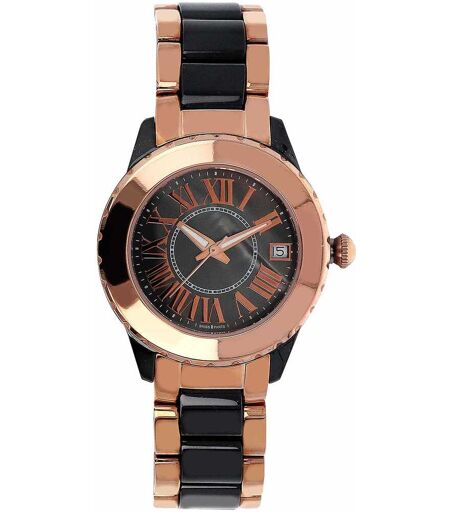 Orologio Da Donna Della Collezione Watches. Realizzato In Lega Golden Rosé Placcata Oro Rosa 18kt. Cassa Tonda (35 Mm) Con Numeri Romani E Piccolo Quadrante Che Segna Il Giorno. Cinturino In Ceramica Nera, Larghezza 18 Mm. Movimento Al Quarzo. Tutti Gli ...