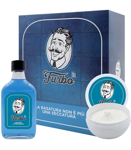 Il cofanetto Furbo Vintage Blu include: Furbo Vintage Blu Shaving Soap 100ml + Furbo Vintage Blu After Shave 200ml ...