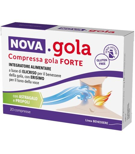 NOVA - gola - FORTE - Descrizione Integratore alimentare a base di elicriso, con erisimo, astragalo e propoli. Elicriso: favorisce il benessere della gola. Erisimo: contribuisce a migliorare il tono della voce, favorisce la funzionalità delle prime vie respiratorie e svolge un'azione emolliente e l… ...