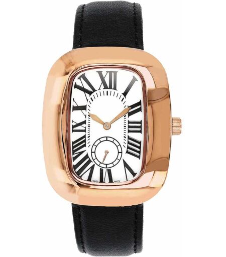 Orologio Da Donna Della Collezione Watches. Realizzato In Lega Golden Rosé Placcata Oro Rosa 18kt. Cassa Rettangolare Con Angoli Smussati (31.5x38.5 Mm) Con Numeri Romani E Piccolo Quadrante Tondo Che Segna I Secondi. Cinturino In Pelle Stampata Nera, ...