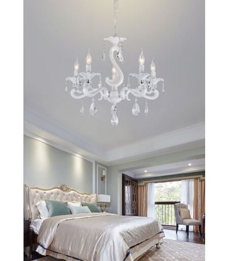 UNIVERSO Lampadario sospeso classico con cristalli a 5 luci E14 design vintage pendente nero bianco cucina camera salotto Bianco
