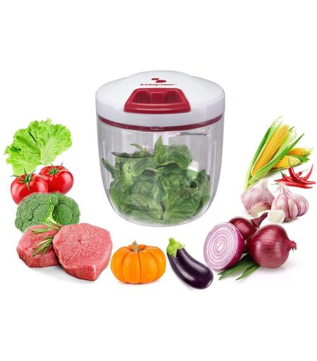 BEPER C107UTT002 Tritatutto Manuale, Tritatutto a corda, Contenitore in ABS,1000 ml, 5 Lame in acciaio, Bianco/Rosso -