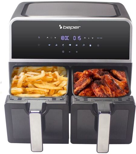 BEPER P101FRI090 Friggitrice ad Aria Doppio Cestello, 9 Litri (4,5 per Cestello) - Friggitrice ad Aria 2 Cestelli con 7 Programmi Preimpostati -