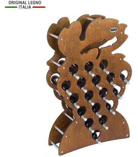 ORIGINAL LEGNO ITALIA Cantinetta Portabottiglie in Legno Scaffale mobile per Bottiglie vino MADE IN ITALY mod. Grappolo Noce B.18 L75 x P25 x 120H