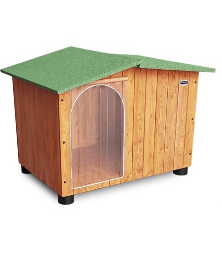 Le cucce Original Legno Italia sono costruite artigianalmente in robusto legno massello spessore 15 mm pino Svezia di prima qualità, adatto per l'esterno. Il legno è un isolante termico per eccellenza. Essendo d'origine naturale e disponendo di ottime proprietà coibentanti proteggono l'ambiente, creano un ambiente abitativo salubre. Poggiano su piedoni in materiale plastico che proteggono dall’umidità tutta la struttura. L'ingresso è dotato di bordature protettive in alluminio anti morso e anti scheggiatura del legno , mentre la struttura interna garantisce una straordinaria robustezza. Il Tetto è apribile tramite cerniere; ciò permette una facile pulizia interna. La sua copertura è realizzata in uno speciale materiale impermeabilizzante ed isolante, rivestito con scaglie di pietra d'ardesia colorata verde prato. materiale impermeabilizzato e isolante , La verniciatura viene effettuata con la tecnica di immersione in impregnante ecologico, antisettico - antimuffa, atossico, repellente ...