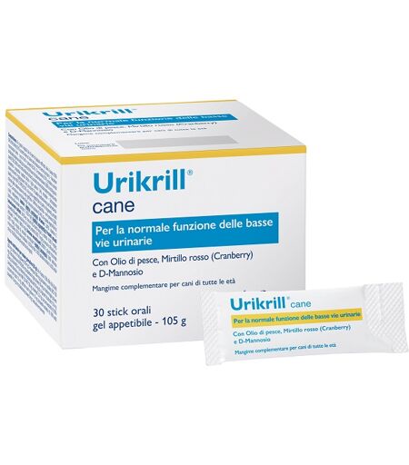 Urikrill - cane - Descrizione Mangime complementare dall'azione sinergica e completa formulato con olio di pesce, mirtillo rosso (cranberry) e D - mannosio per favorire la normale funzionalità delle vie urinarie del cane, favorendo il fisiologico benessere dell'urobioma. Ingredienti Oli e grassi ve… ...