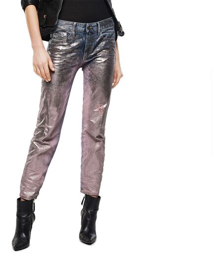Stile slim con vita bassa e un´attitudine pulita e classica.Il nuovo design a cinque tasche si ispira agli archivi Diesel.Il tessuto fisso è spruzzato su tutta la superficie con una finitura metallizzata e lucida.Caratteristiche:- Non elasticizzato.- Trattato.- Slim.- Vita bassa.- Chiusura con zip.Specifiche:- 100% cotone.Cura:- Lavaggio in lavatrice a 40°C.- Non candeggiare.- Stirare a bassa temperatura.- Non lavare a secco.- Non asciugare in asciugatrice.- Asciugare in piano all´ombra. ...