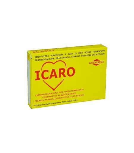 ICARO - Integratore alimentare utile per il mantenimento di livelli normali di colesterolo nel sangue. A base di riso rosso fermentato proantocianidine policosanoli vitamine coenzima Q10 cromo ed estratto di pepe nero; contiene anche vitamine biotina e cromo. Riso rosso fermentato Fonte di Mo… ...