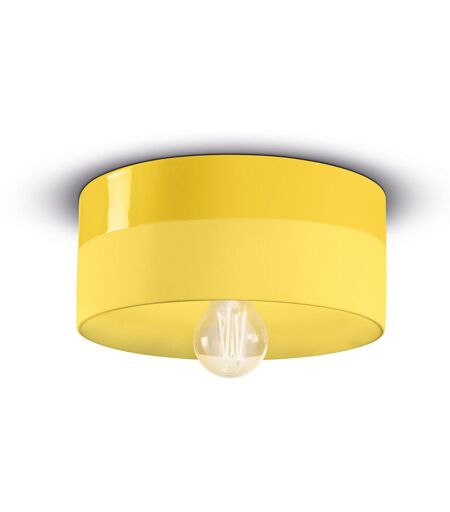 Collezione PI LA GENIALE Plafoniera piccola dallo stile decò 1 luce in ceramica con finitura giallo limone realizzata 100% Made in Italy da mastri artigiani.. La precisione formale e la rigorosità dei volumi è il carattere distintivo di questa collezione che, coniugando sapientemente forme geometriche regolari a pattern caratteristici ed elementi tecnici a scomparsa compone figure di grande impatto e quasi metafisiche, capaci di inserirsi senza alcun problema in ambienti di differente ispirazione e carattere. Disponibile in molte varianti e applicazioni, infatti questa versione può essere utilizzata anche come applique per illuminare ambienti moderni, in particolare una cucina o anche un esercizio commerciale in stile moderno e design. La collezione Pi fa un ineccepibile utilizzo delle tecniche di decorazione ceramica, che riquadrano superfici ricche, piacevoli e bilanciate.Questo articolo è realizzato interamente a mano ed è disponibile anche in altre finiture, come da foto campione. ...