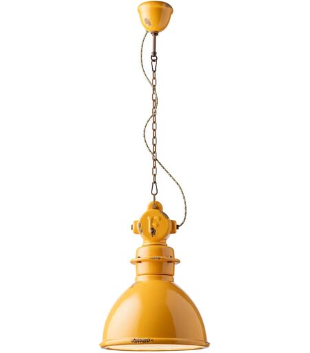 FERROLUCE Lampadario Industrial Ferro e Ceramica Vintage Giallo 1 Luce E27