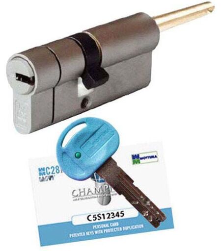 Cilindro ottone nichelato Utilizzo 1 chiave e 1 pomolo Certificazione ICIM UNI EN 1303 e SKG 5 perni di cifratura - Perno superiore matematico Resistente Bumping, Picking e Tracing Chiave elemento mobile 3 gradi liberta' 3 chiavi Personal card ...