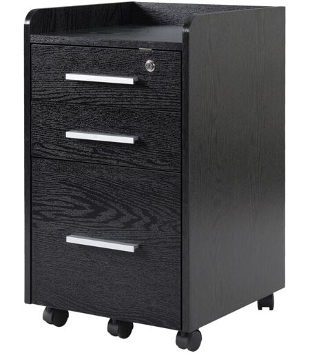 HOMCOM Cassettiera da Ufficio a 3 Cassetti con Chiavi e 5 Ruote Nero