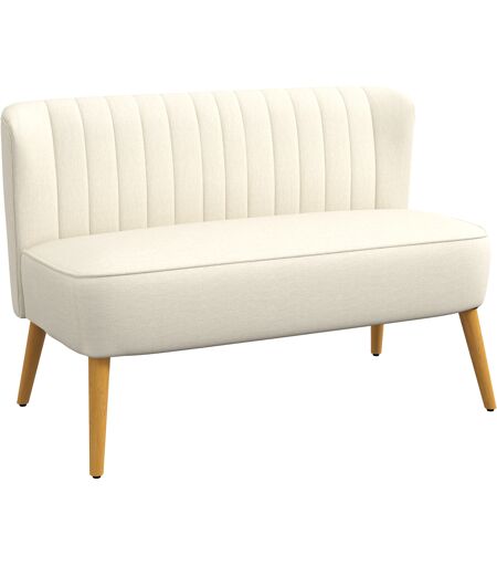 Homcom Divano 2 Posti Moderno in Tessuto Senza Braccioli con Gambe in Legno, 117x56.5x77 cm, Bianco Crema Aosom Italy