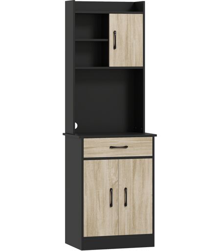 Homcom Mobile Dispensa in Legno con Cassetto, 2 Ripiani Aperti e Armadietti, 60x40x180 cm, Nero e color Legno Aosom Italy