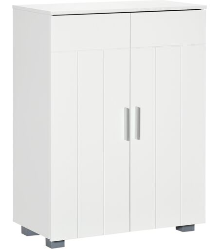 Kleankin Mobile Bagno Moderno con 2 Ante, 2 Ripiani Regolabili e Maniglie Argentate, 60x30x80 cm, Bianco Aosom Italy