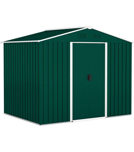 Outsunny Casetta da Giardino 3.6m² in Lamiera di Acciaio con 2 Porte Scorrevoli e 4 Prese d'Aria, 236x174x190 cm, Verde Aosom Italy