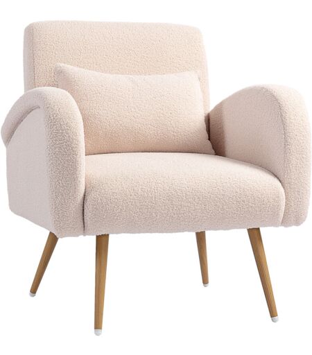 HOMCOM Poltrona Moderna per Salotto in Tessuto Teddy con Cuscino Lombare Beige
