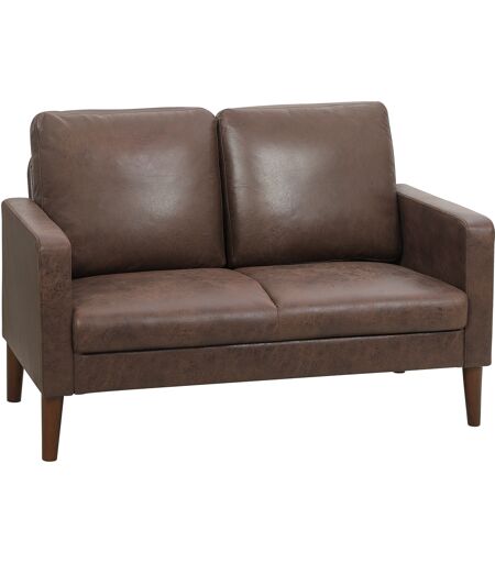 Homcom Divano 2 Posti Moderno con Rivestimento in Tessuto Effetto Pelle Traspirante e Gambe in Legno, 130x78x85 cm, Marrone Scuro Aosom Italy