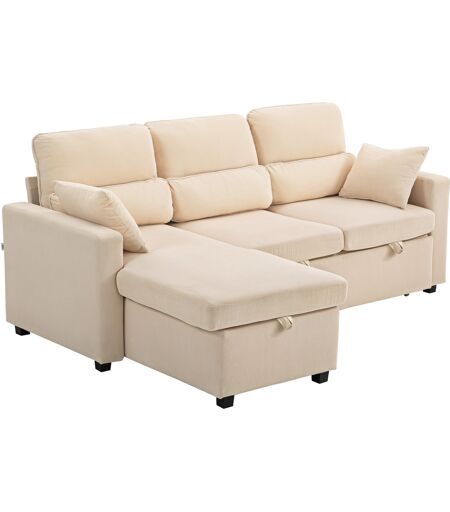 Homcom Divano Letto Angolare con Vano Contenitore, Rivestimento in Velluto a Coste e 2 Cuscini, 205x135x76 cm, Beige Aosom Italy