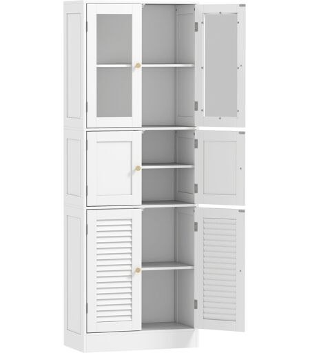 Homcom Mobile Bagno con 3 Armadietti a 2 Ante in Vetro e Legno, Ripiani Regolabili, 60x30x170 cm, Bianco Aosom Italy