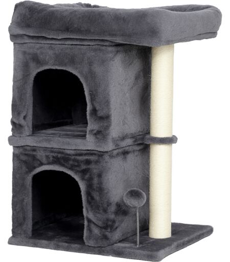 Pawhut Torre per Gatti Fino a 7 kg con 2 Casette e Lettino, Palo in Sisal e Rivestimento Peluche, Grigio Scuro Aosom Italy
