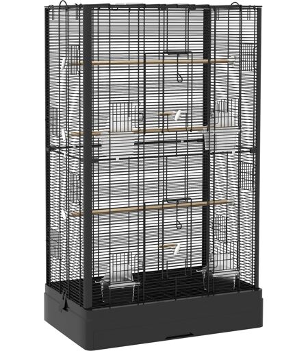 Pawhut Gabbia per Uccelli con Vassoio Estraibile e Posatoi, Voliera per Pappagalli, 61x36.5x98cm, Nero Aosom Italy