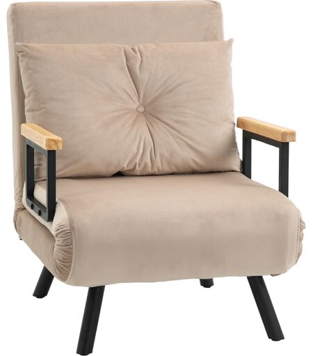 Homcom Poltrona Letto 3 in 1 con Schienale Reclinabile e Cuscino, in Tessuto Effetto Velluto, 63x73x81 cm, Beige Aosom Italy