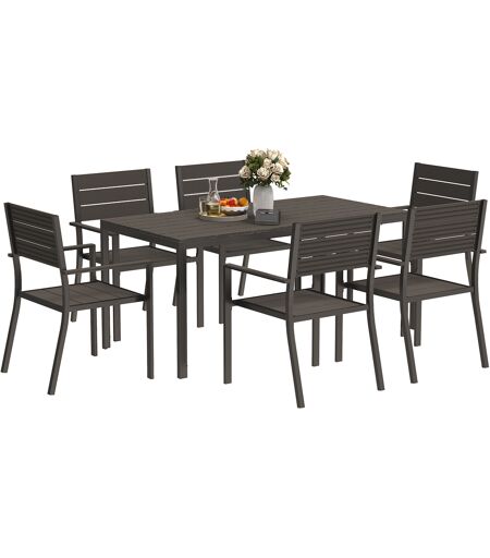 Outsunny Set da Esterno con Tavolo da Pranzo Rettangolare e 6 Sedie Impilabili con Braccioli, Marrone