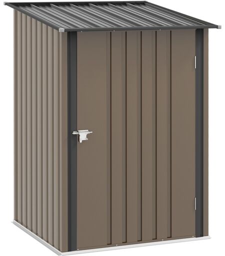 Outsunny Casetta da Giardino Porta Attrezzi in Acciaio Galvanizzato e Porta, 100x103x160cm, Marrone Aosom Italy