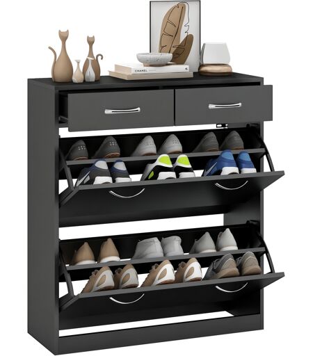 Homcom Mobile Scarpiera da 12 Paia con 2 Ripiani Interni Regolabili e 2 Cassetti, in Legno, 80x30x91.5 cm, Nero