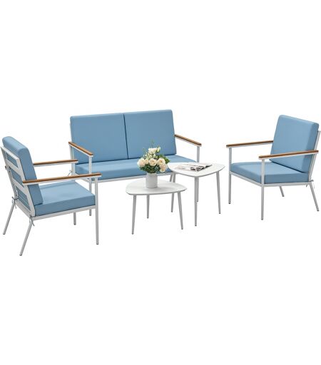 Outsunny Set da Esterno con Divano 2 Posti, 2 Poltrone e 2 Tavolini da Caffè in Vetro, Azzurro