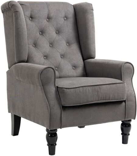 HOMCOM - Poltroncina da Camera Stile Francese con Cuscini Sfoderabili Grigio