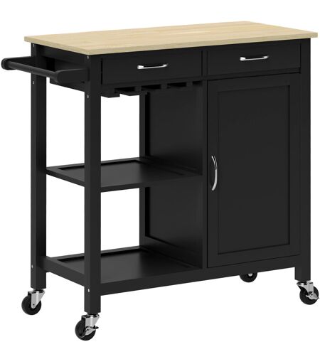 Homcom Carrello Cucina Classico con Cassetti, Ruote e Armadietto 2 Ante Salvaspazio 89x40x84cm, Nero Aosom Italy