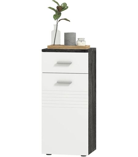 KLEANKIN - Mobile Bagno in Legno Armadietto con Mensole e Cassetto Bianco e Nero