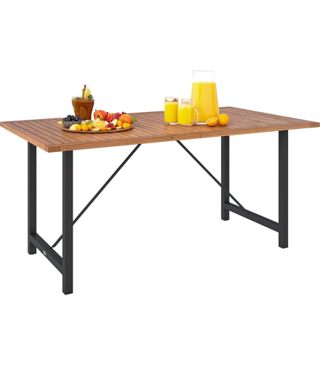 Outsunny Tavolo da Giardino 160x90 cm in Legno di Acacia e Acciaio con Piano a Doghe, Teak