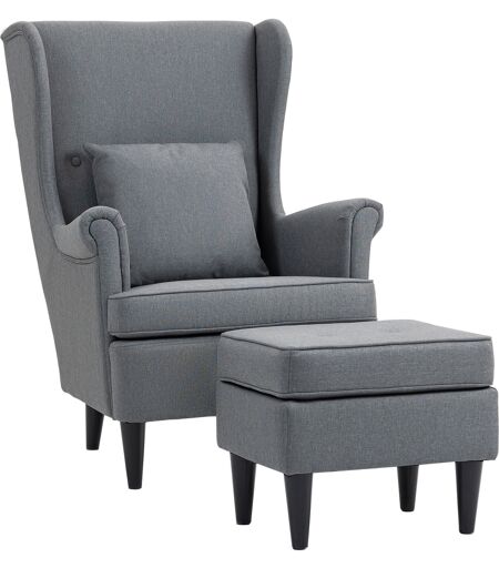 Homcom Poltrona per Salotto in Tessuto con Pouf Poggiapiedi, Schienale Alto e Cuscino, 75x83x104 cm, Grigio Aosom Italy